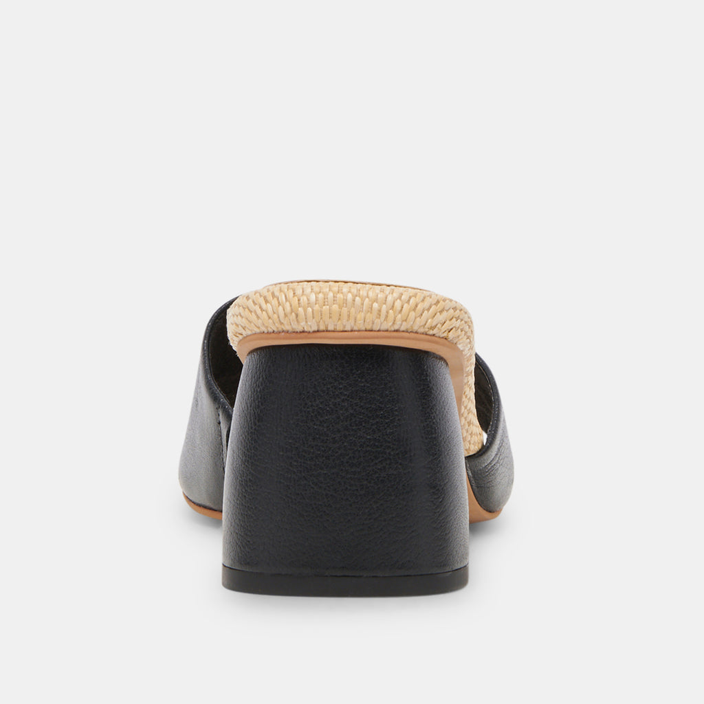 MINNY RAFFIA HEELS BLACK LEATHER– Dolce Vita 6928796713026